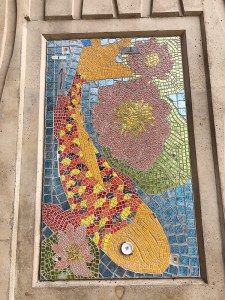 One of two mosaics in the permanent public art collection of the City of Encinitas as part of 53 artworks installed in the Santa Fe Undercrossing.